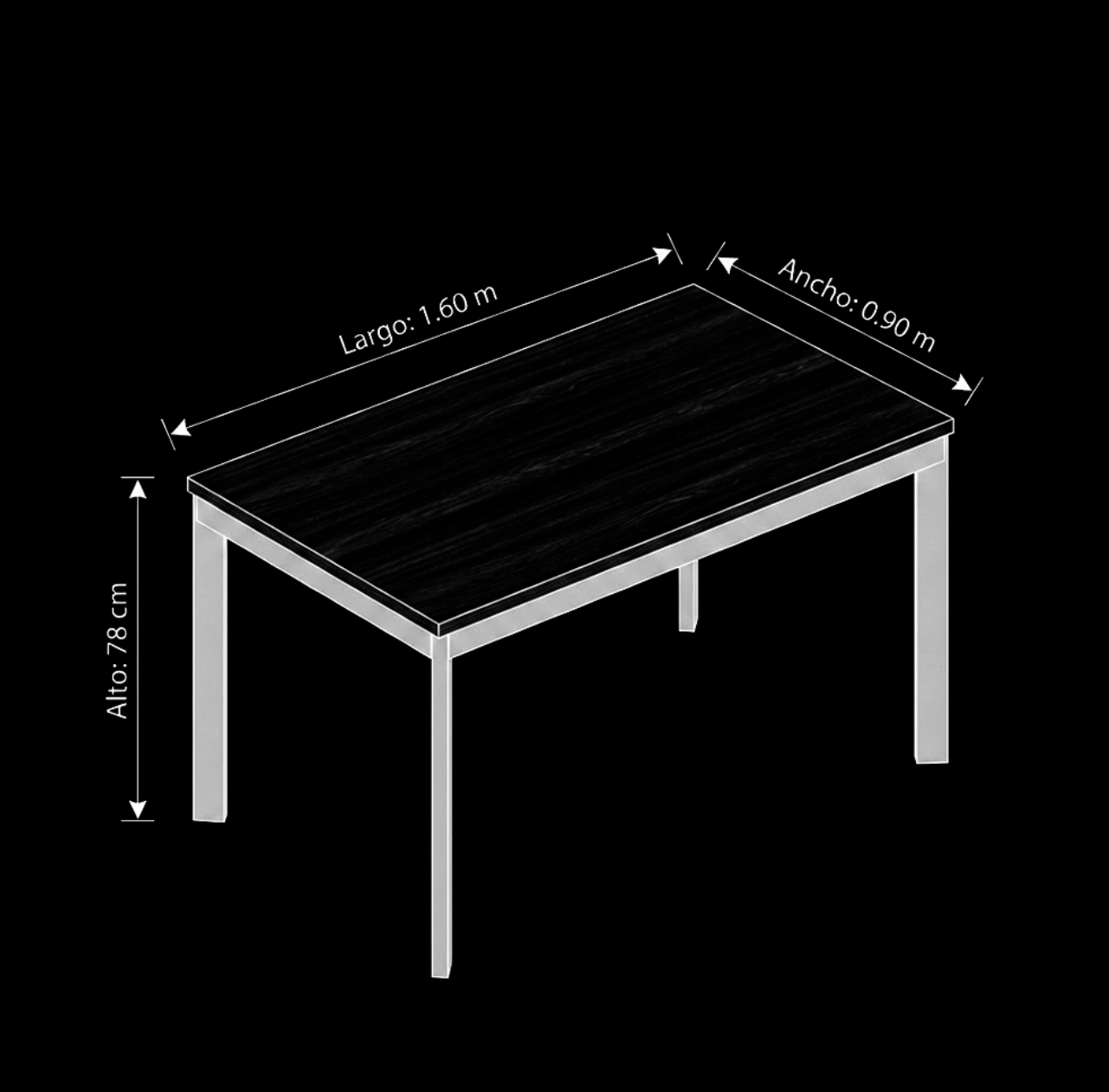 Mesa realizada en madera MDF melamina paraíso 18 mm. Filo de PVC de 2 mm. Base en hierro pintado negro con costillas centrales.